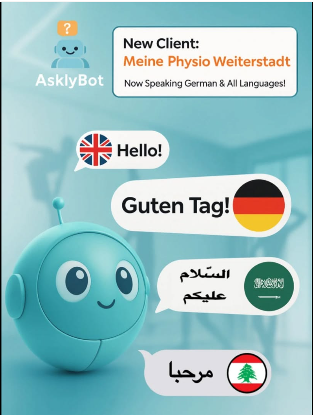 A warm welcome to our new client, Meinephysio Weiterstadt, who will leverage AsklyBot’s AI-driven, multilingual customer support to provide instant, intelligent, and seamless interactions.